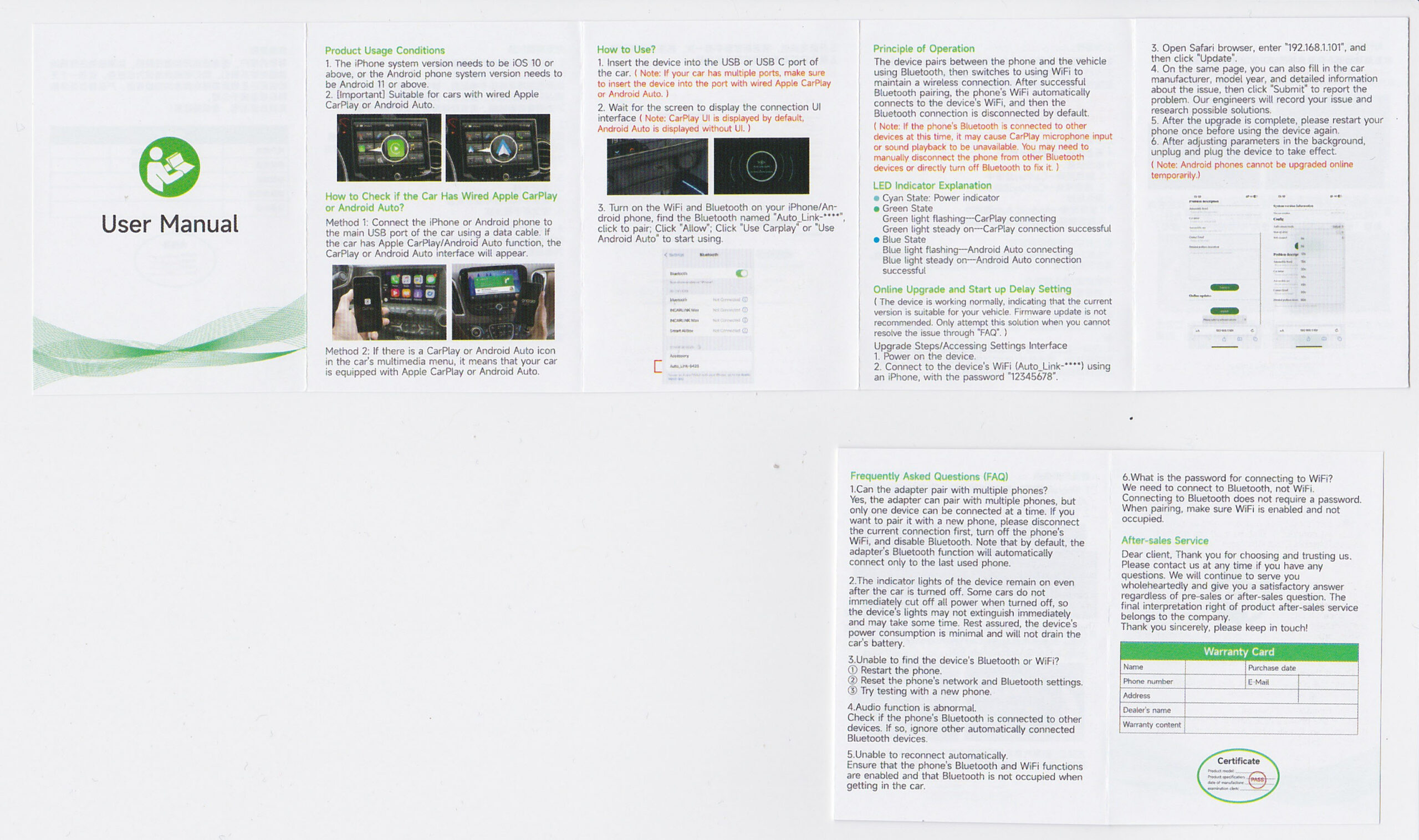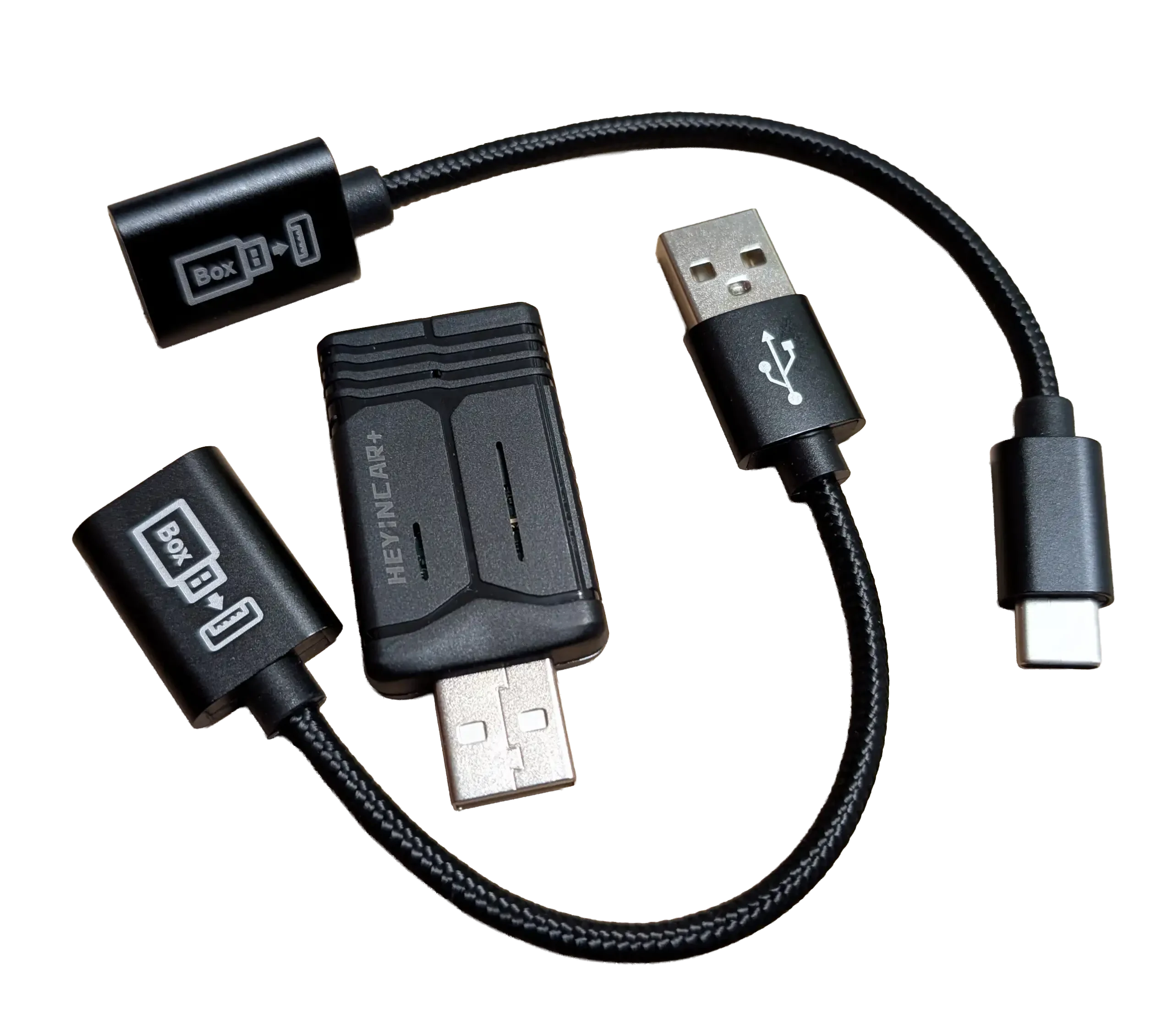 Der Adapter wird über USB angeschlossen. Eine Kabelverlängerung für USB-A und ein Adapter auf USB-C liegen bei, damit der Anschluss bei allen gängigen Autos funktioniert. Nach dem Einstecken verbinden Sie Ihr Mobiltelefon einmalig per Bluetooth mit dem Heyincar Wireless Adapter, danach wird das Telefon automatisch erkannt. Für die Einrichtung wird keine App benötigt.